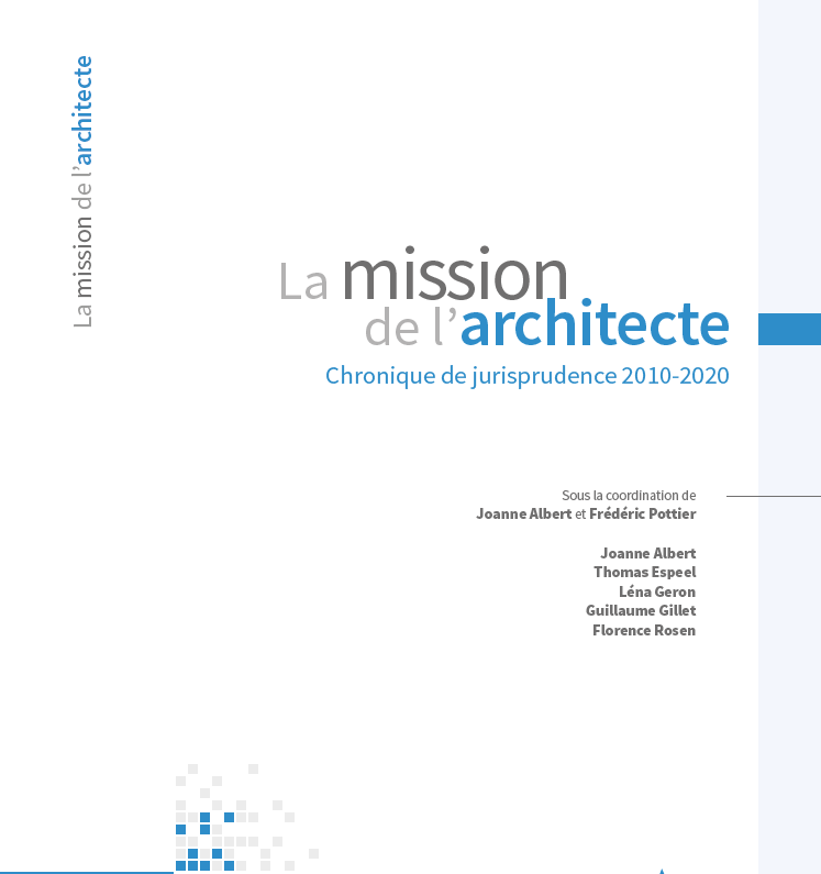 Celui-ci s’inscrit dans la suite logique de la parution de l’ouvrage « La mission de l’architecte : chronique de jurisprudence 2010-2020 » rédigé par Joanne ALBERT, Thomas ESPEEL, Léna GERON, Guillaume GILLET et Florence ROSEN sous la coordination de Joanne ALBERT et Frédéric POTTIER.